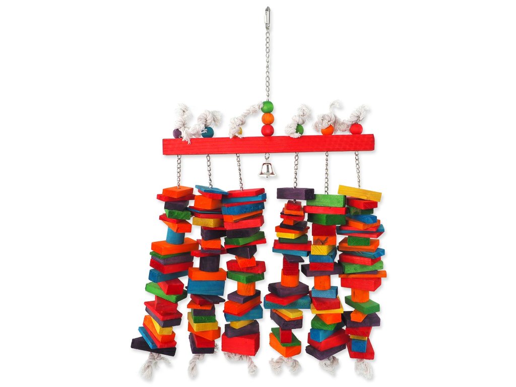 Hračka Bird Jewel závěsná s barevnými dřívky a zvonečkem 70x40cm