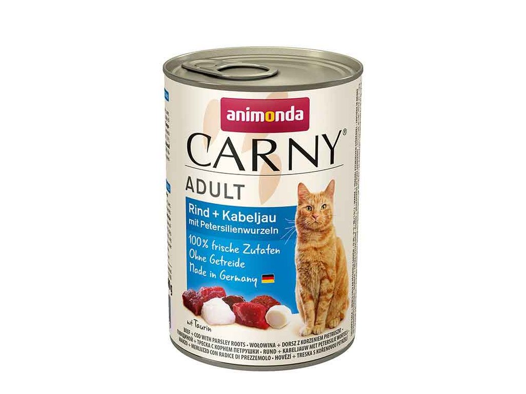 Animonda CARNY JUBILEE S TRESKOU A KOŘENOVOU PETRŽELÍ je kompletní krmivo pro dospělé kočky