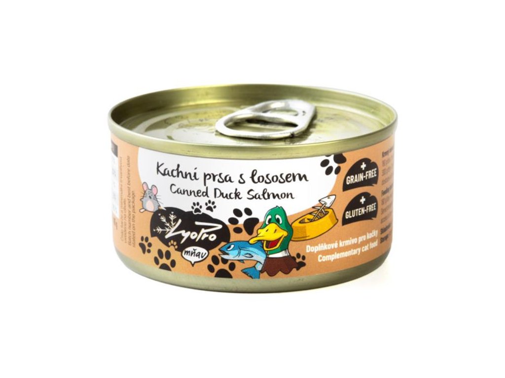 - obsahuje 45 % šťavnatých kachních prsou a 16,7 % lososa,