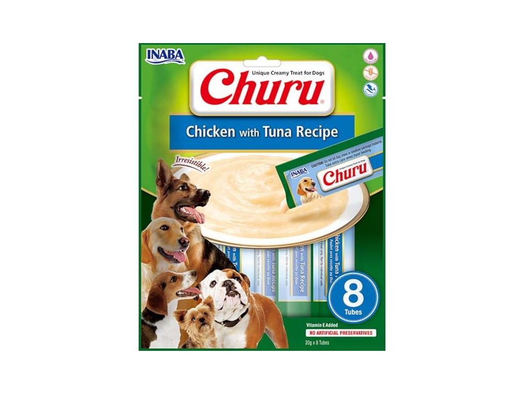 Lahodný pamlsek krémové konzistence bez obilovin, s nízkým obsahem kalorií, bez konzervantů, chemických aromat, barviv a umělých dochucovadel můžete díky unikátní krémové konzistenci podávat přímo z ruky, samostatně z misky nebo společně s granulemi pro vylepšení jejich chuti. Pamlsky Churu mají vysoký obsah vody a díky tomu jsou vhodným doplňkem k suchému krmivu, pro pohotovostní doplnění tekutin a pro psy, kteří málo pijí. Churu jsou ideální pro ukrytí tablety na odčervení či jiného léku, který je potřeba psovi nenásilně podat. 100% přírodní a zdravé mlsání pro psy všech věkových kategorií.